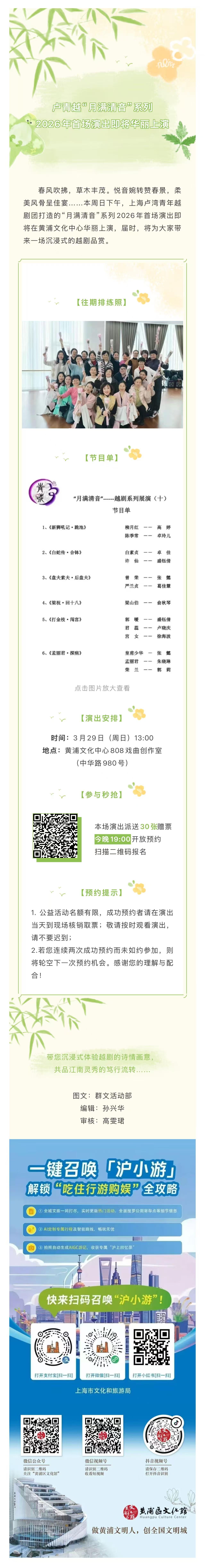 【剧院魅艺·抢票】春风十里草木盛,婉转唱腔呈清韵——卢青越“月满清音”系列2026年首场演出即将华丽上演